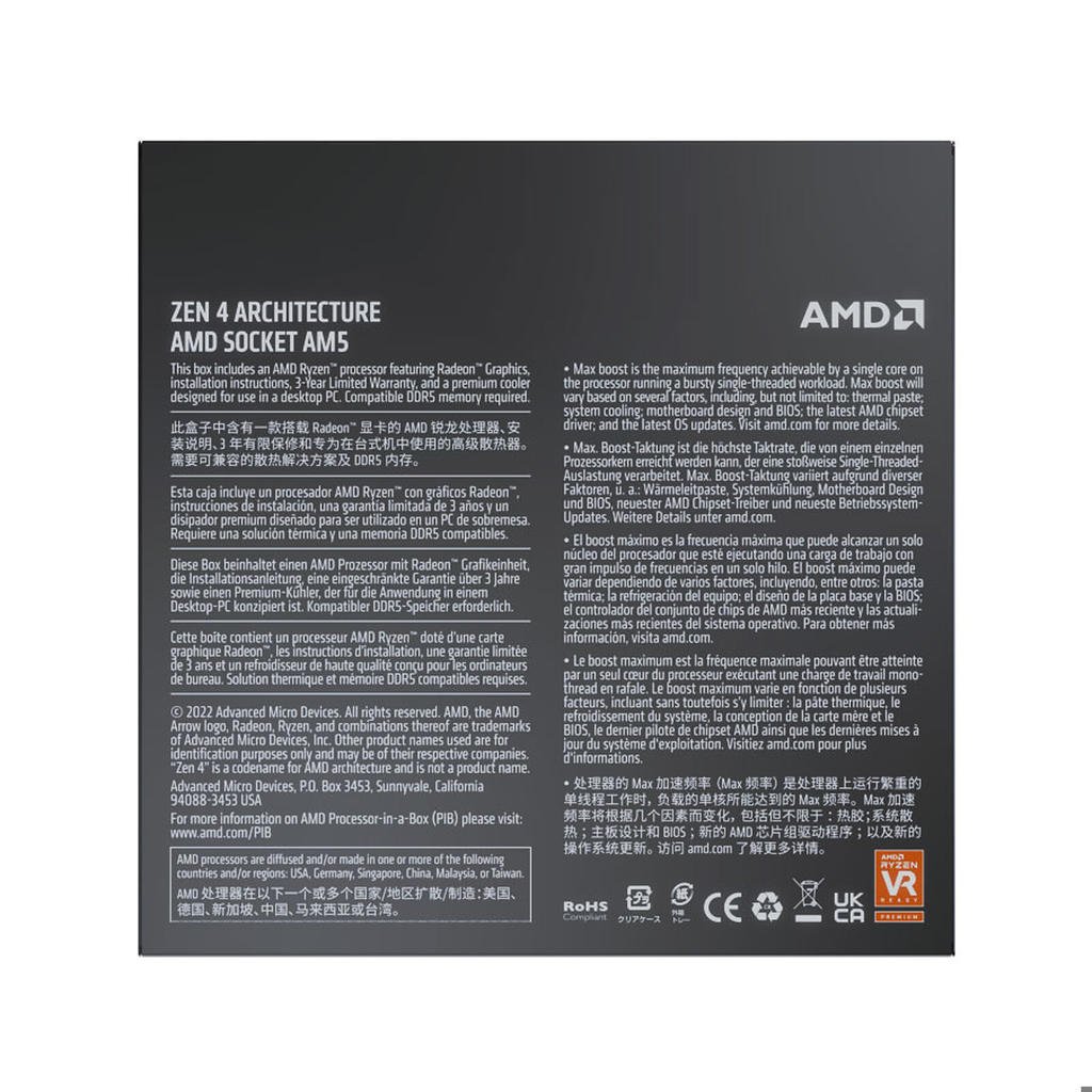 Processeur 6-Core 12-Threads socket AM5 GameCache 38 Mo 5 nm TDP 65W (version boîte avec ventilateur – garantie constructeur 3 ans)