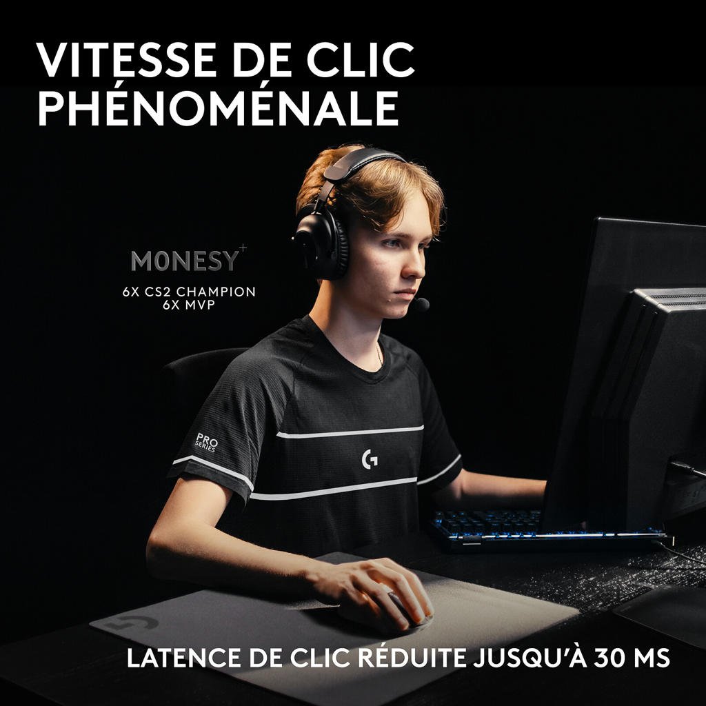 Wireless gaming mouse – right-handed – 44,000 DPI optical sensor – 5 programmable buttons – Lightspeed technology – haptic feedback